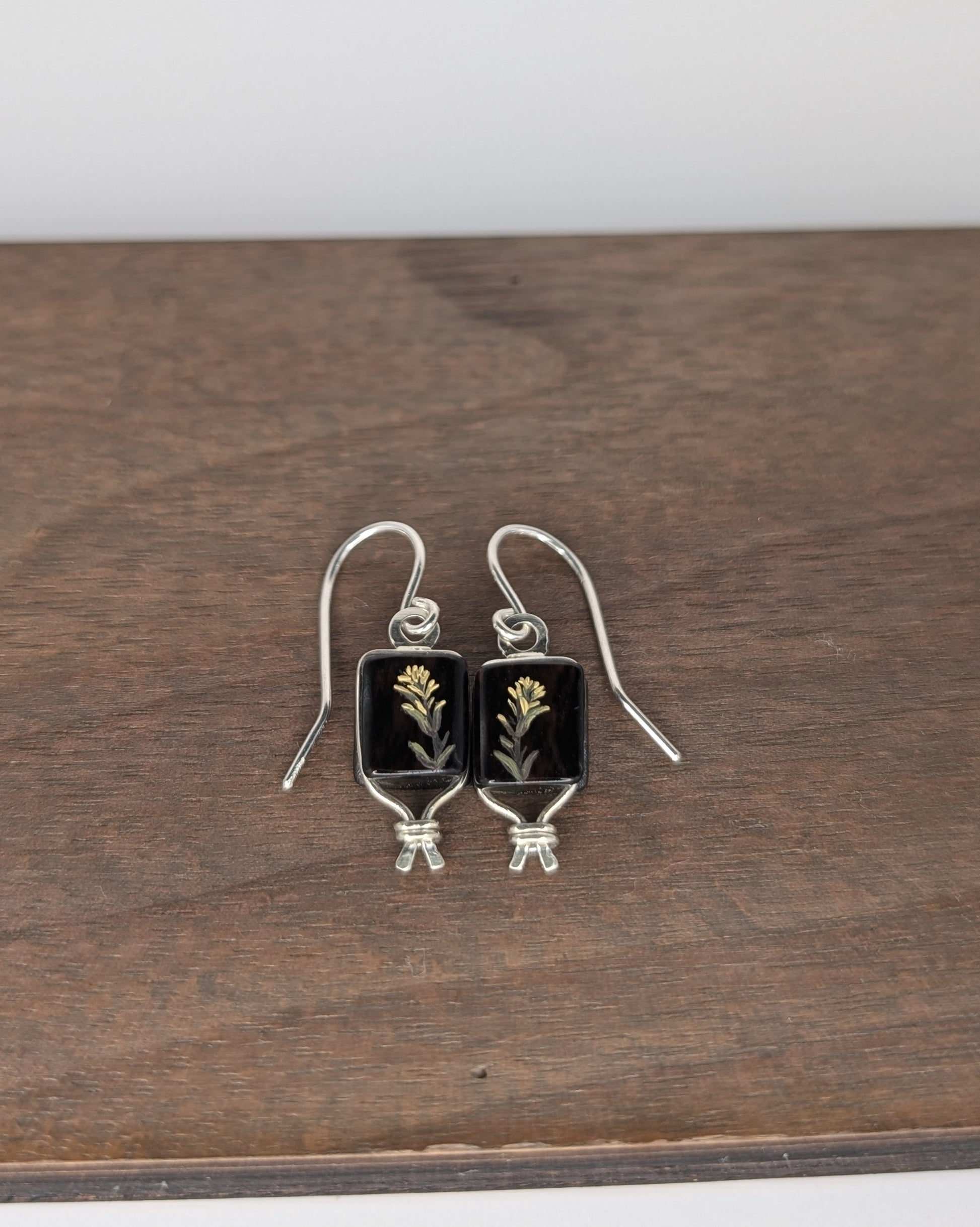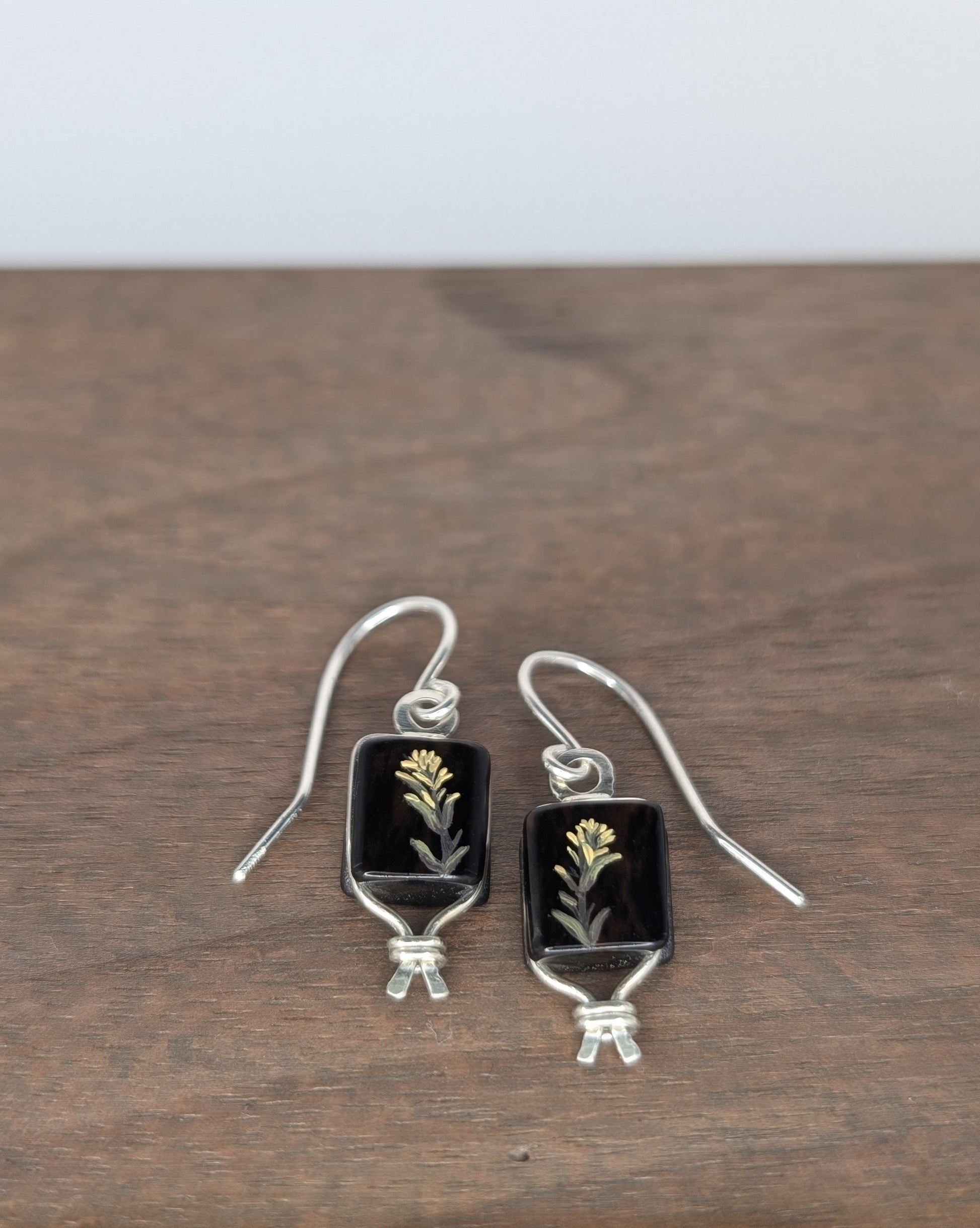 Each flower is painted freehand using fine brushes. Set with sterling silver ear wires. One of a kind.