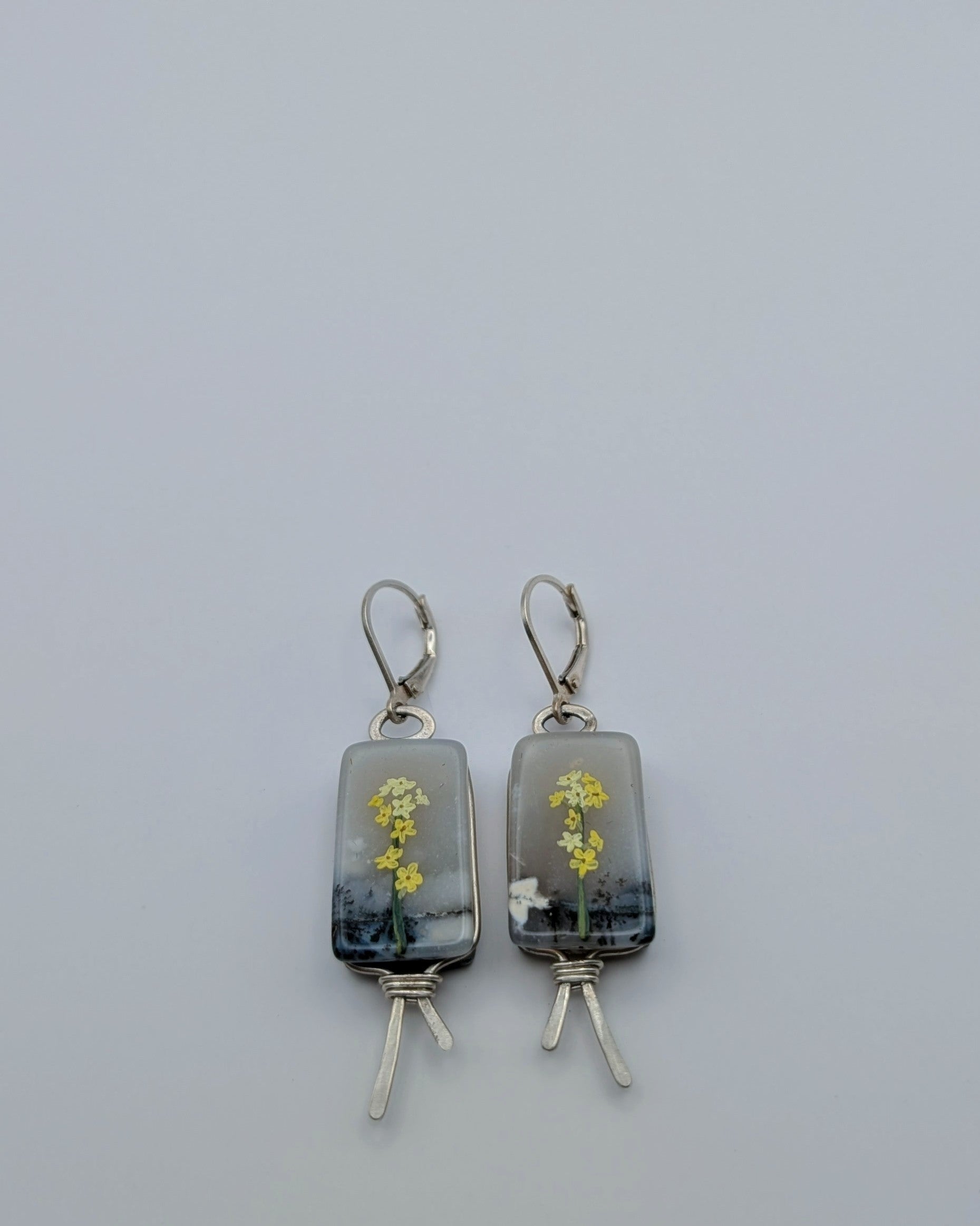 Oil Painted Yellow Catspaw (Utah native flower) on Agate, in Sterling Silver.